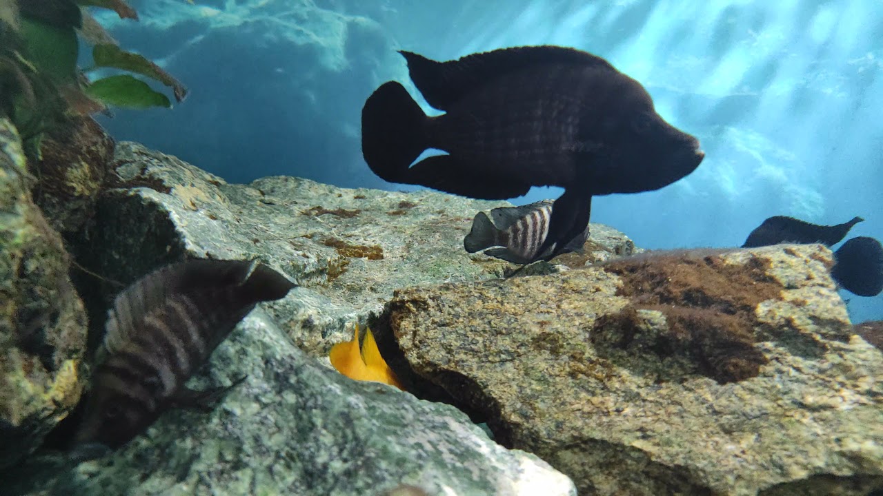 | Haplochromis piceatus Lake Victoria - Breeders. Extinct in the wild. However, captive "safety populations" are being maintained at several public aquariums. The males of this species are characterized by their velvety black bodies with red fins. |