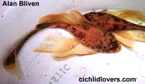 These are pictures of 3" adolescents a few weeks before their first spawns. The top two are of the male and the bottom two are of the females. The males get much longer whiskers as they age.