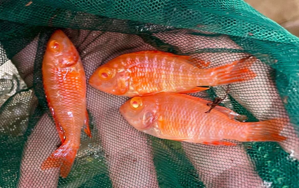 | Aulonocara "Dragon Blood" in assorted colors, orange, or Pink - Breeder's choice. |